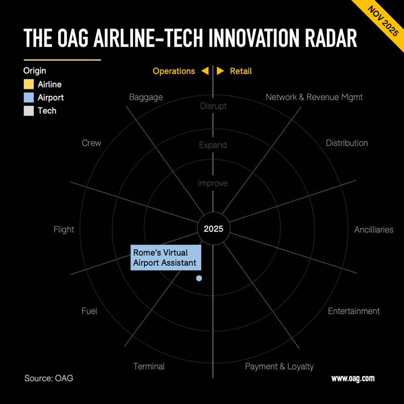 - Aeroporti di Roma’s new AI Virtual Assistant aims to give travelers real-time support and personalized guidance before, during, and after the airport experience via WhatsApp and the airport’s website.