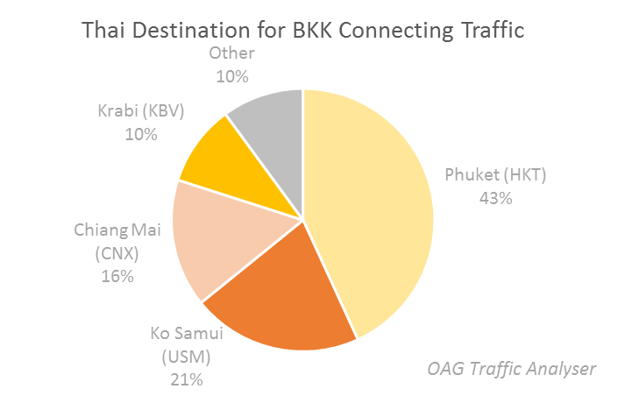 For the 39% of passengers travelling via BKK to destinations in Thailand, four Thai airports account for 90% of traffic. These are the dominant tourist destinations of Phuket, Koh Samui, Chiang Mai and Krabi. In total, over a third of all connecting passengers at BKK are headed to or from Thailand’s tourist hotspots. While this is great for BKK, there is a risk that if airlines choose to serve those destinations with new aircraft types, such as the A320neo which OAG identified as one of the drivers for change in its recent ‘Asia’s Catalysts’ report, it will make these ‘thinner’ routes more cost effective, bypassing BKK entirely.