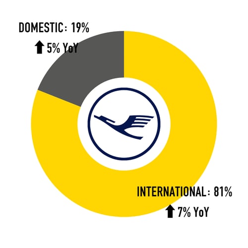 - As Germany’s national airline, Lufthansa continue to dominate capacity at the two main airport hubs - Frankfurt and Munich - where they hold close to 60% share at each, with large proportions of that traffic connecting onwards to other destinations.